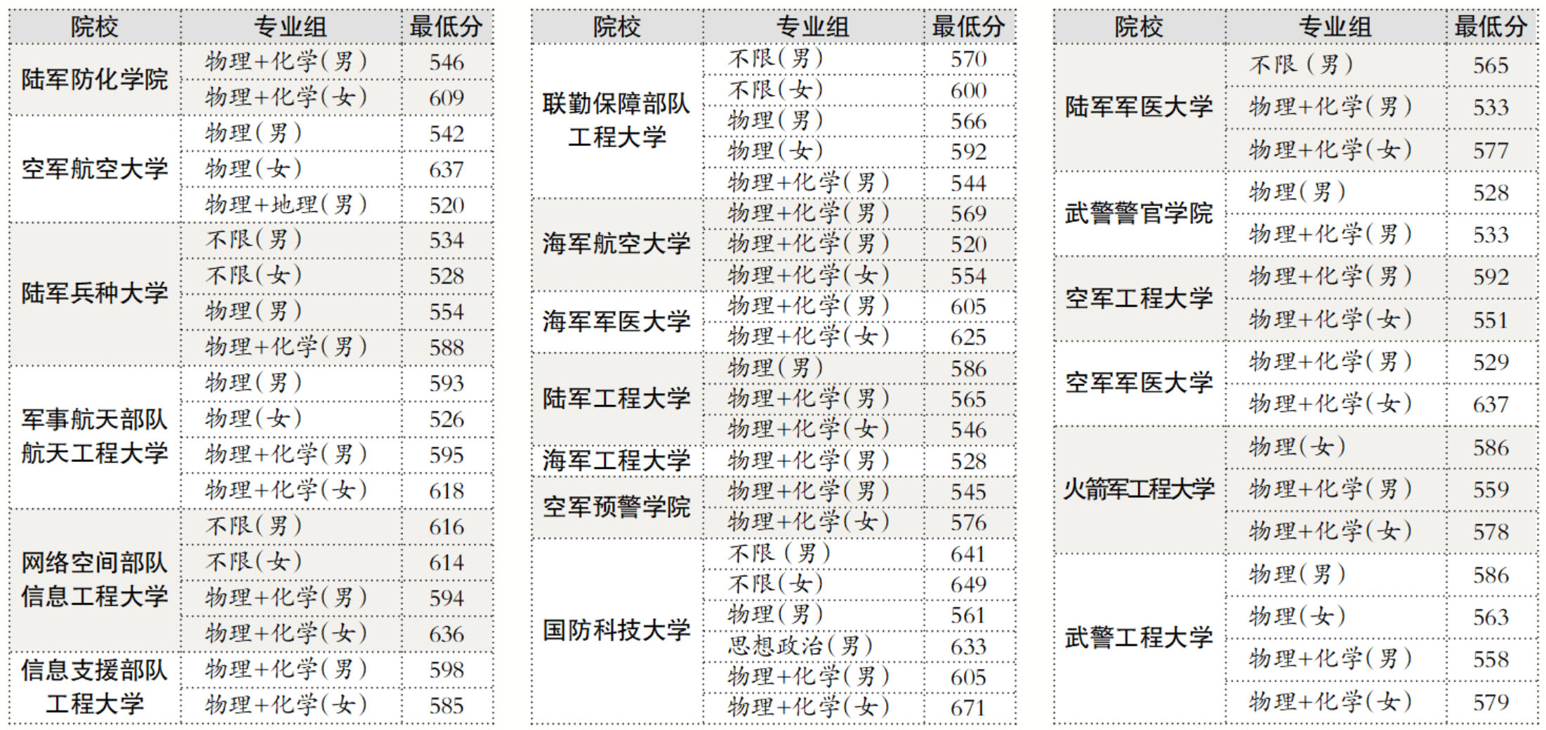 2025年军队院校在京本科提前批普通类A段各专业组录取最低分数